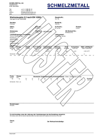 当然,您将收到有关HOVADUR®合金材料的所有信息。证书示例将显示哪些数值是证书中包含的内容。您可以订购带有更多数值和类型的证书,我们很乐意为您提供建议。