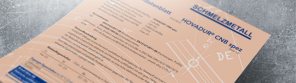 HOVADUR® CNBspez 是一种热沉淀硬化铜合金。在硬化条件下,该材料以高导电率及高导热系数著称,除此以外,它还具有很高的硬度及耐热性。此材料可应用于需要较高导电率与硬度的场合。因为真空科技以及其他特殊工艺,与标准的 HOVADUR® CNB 材料相比,该材料的性能更优秀。