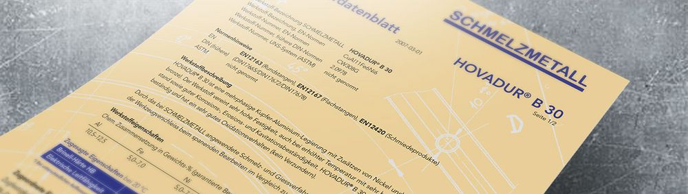 HOVADUR® B30 是一种多相铝铜合金,含有镍和铁(铝青铜)。在高温及压力改变条件下,该材料具有较高抗拉强度,耐磨损,耐腐蚀,耐气蚀。HOVADUR®B20可耐受海水侵蚀,良好的氧化行为(无剥落)。与其他铝青铜比较,SCHMELZMETALL公司出品的HOVADUR®B30 有更低的滑动摩擦,。 应用实例 HOVADUR® B30: